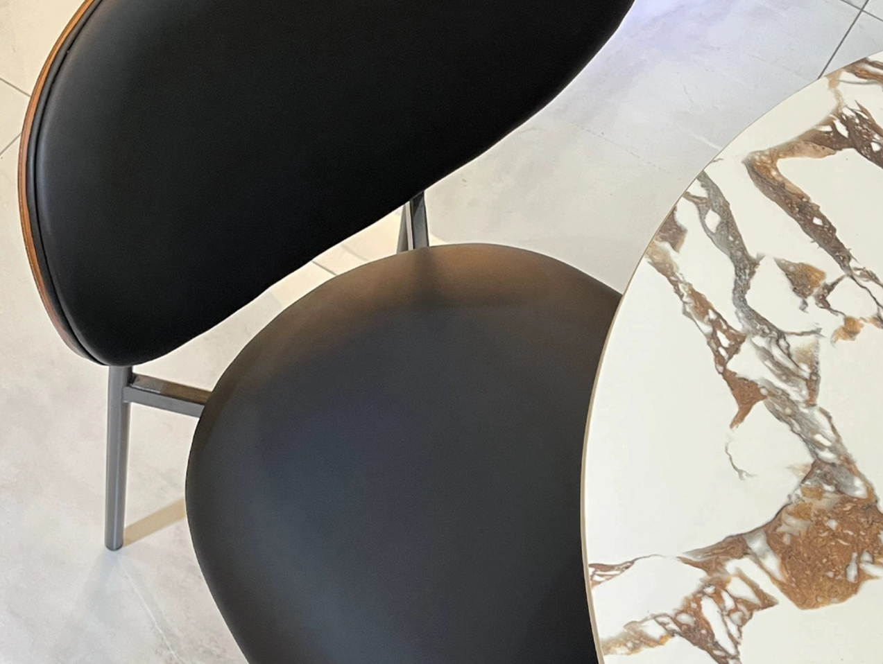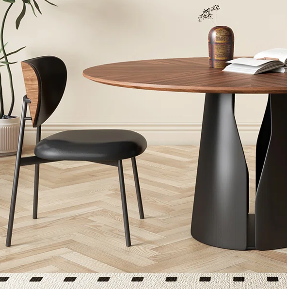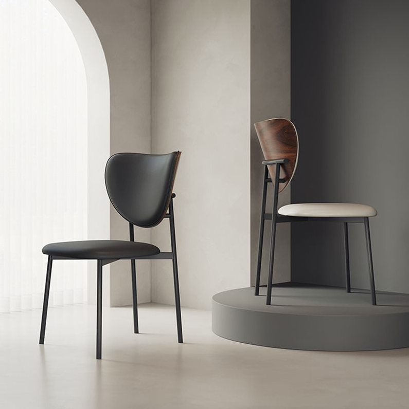 - Enhance your dining space with the Modern Black Dining Chair, featuring a modern design, stylish elegance, ergonomic support, strong bearing capacity, eco-friendly leather upholstery, high-density foam cushioning, and a construction of solid wood bent board and carbon steel.