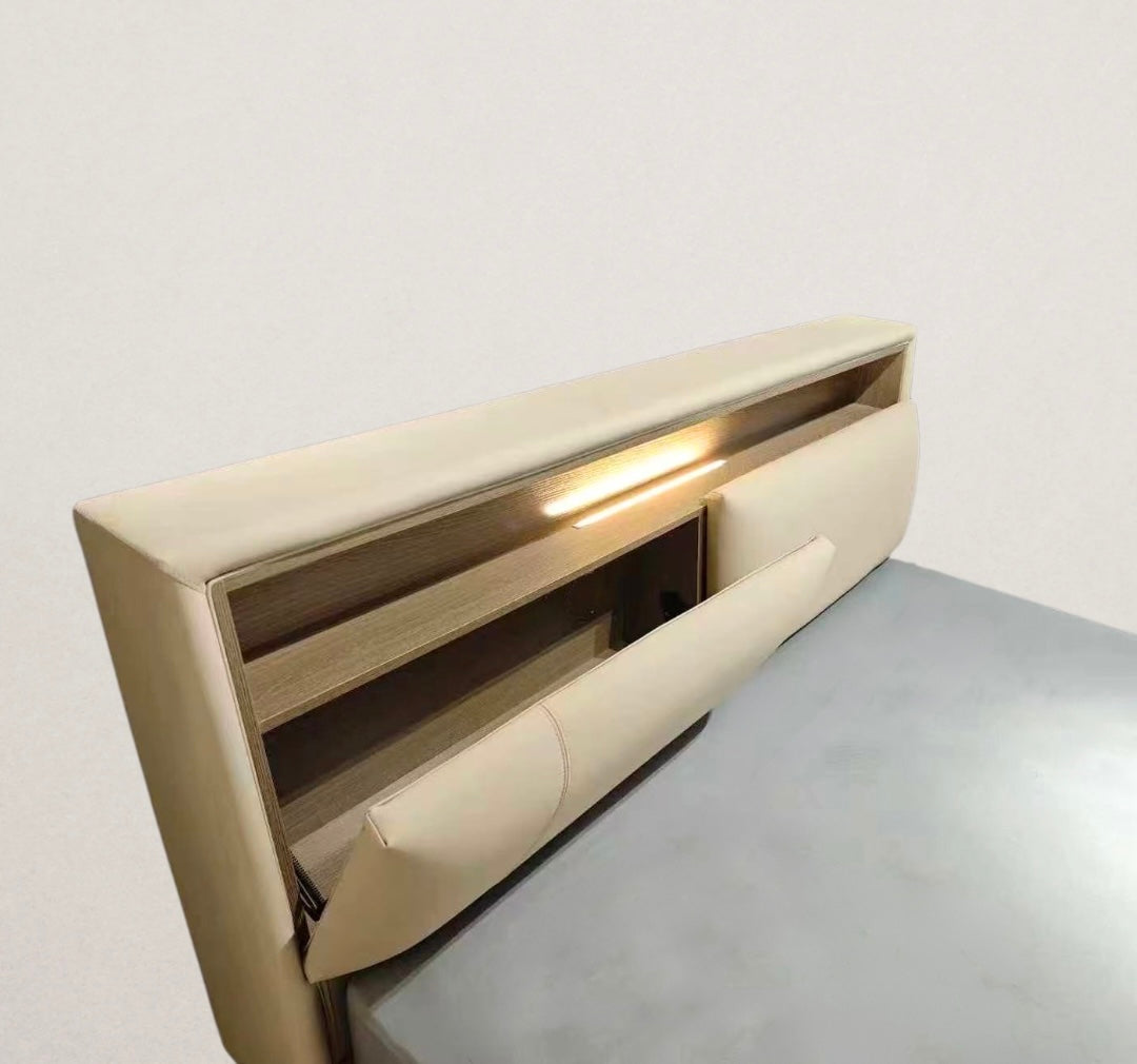 - A seamless blend of modern luxury and intelligent design, the Berlin Bed transforms your bedroom into a sanctuary of style and smart storage solutions